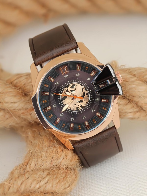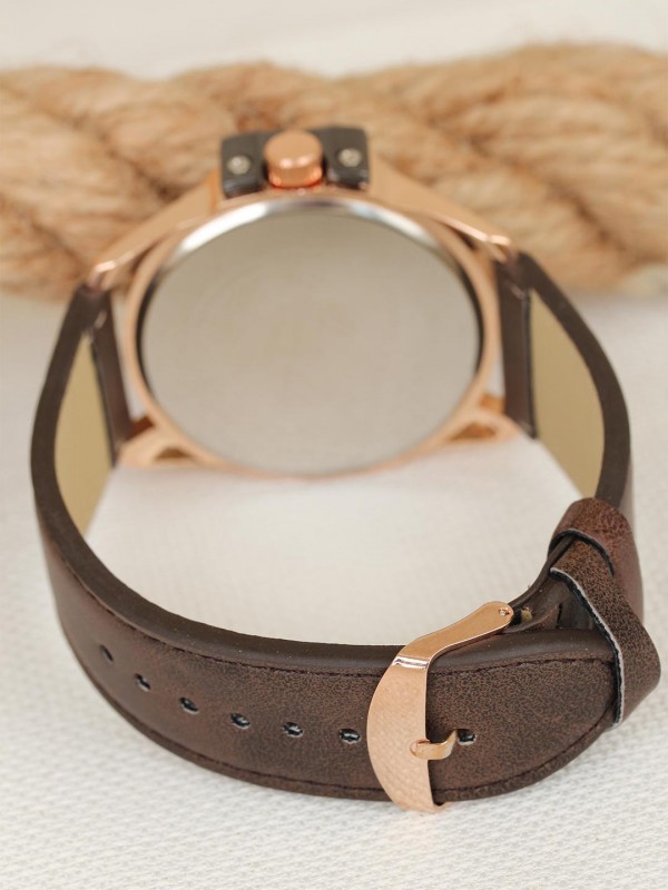 Farklı şıklık arayanlara Kahverengi Deri Kordonlu Rose Spor Kasa Erkek Kol Saati çok yakışacak.